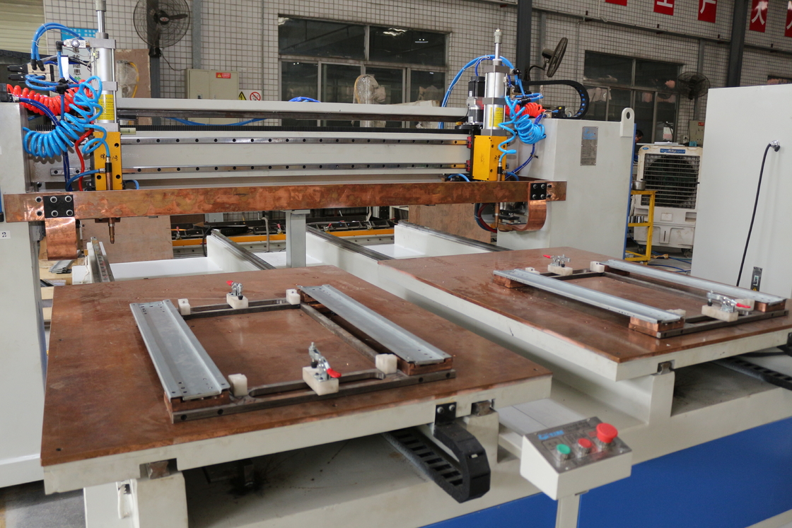De effectieve lasbreedte is 1000 mm tot 2000 mm, terwijl de effectieve laslengte 300 mm is (op maat gemaakt). Werkproces * Handmatig het werkstuk op tafel leggen; * Druk op de startknop, dan zal de machine automatisch las uitvoeren voor één lijn van plekken; * Na het lassen van een lijn, verplaats het product handmatig naar een andere lijn. * Cycluswerk